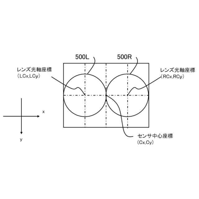 本実施形態におけるセンサ中心座標およびレンズ光軸座標の説明図である。