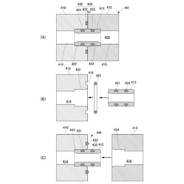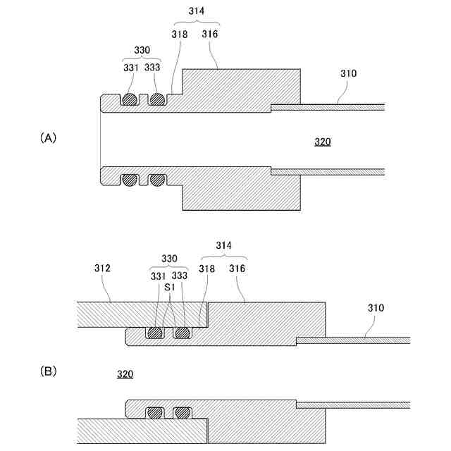 前記第1シールリングが、前記第1部品における前記取付孔の内周面と、前記第2部品における前記挿入部の外周面との間に介装され、
