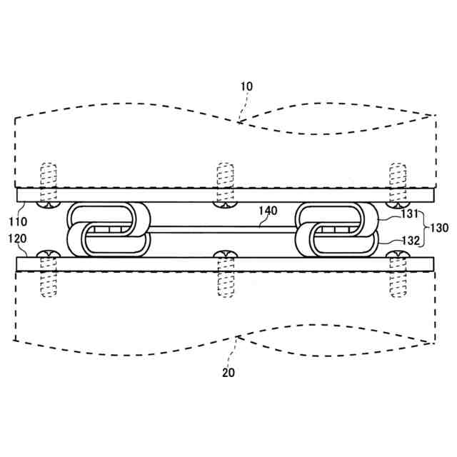 それぞれの前記変位吸収体(130)を構成する前記第1吸収体(131)と前記第2吸収体(132)とを接続する複数の接続片(141)と、