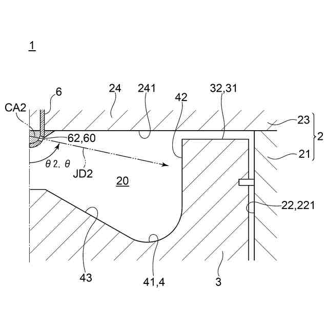 前記第1給気側に位置する前記広角噴孔の指向する方向が前記周方向における前記バルブリセス部が存在する領域を通過しないように構成される、