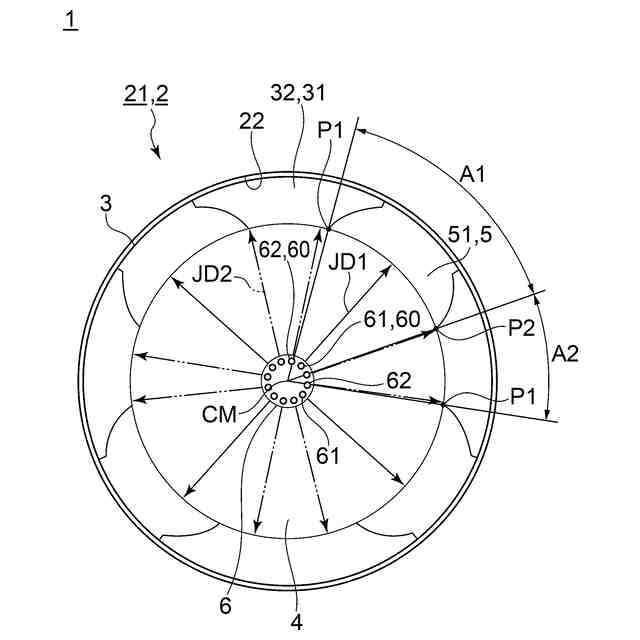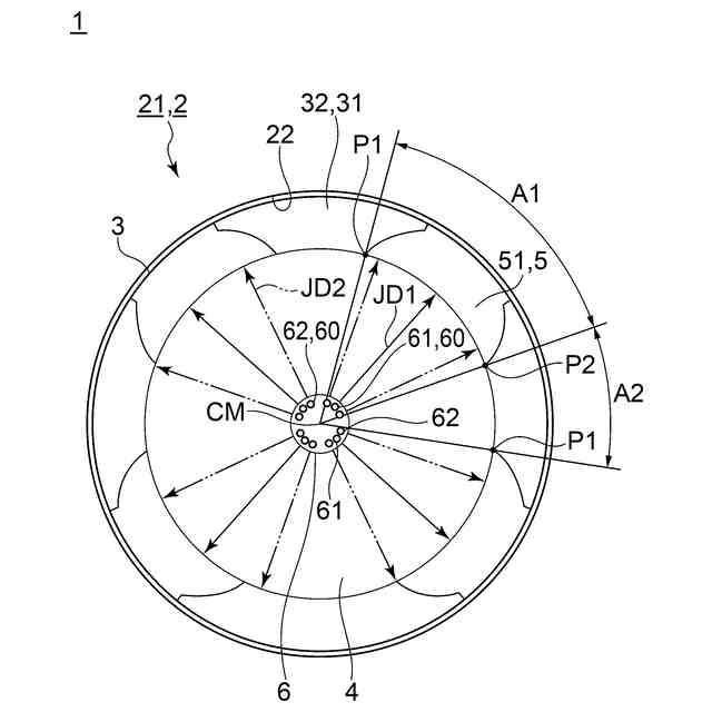 各々の指向する方向が前記周方向における前記バルブリセス部が存在する領域を通過するように構成される、