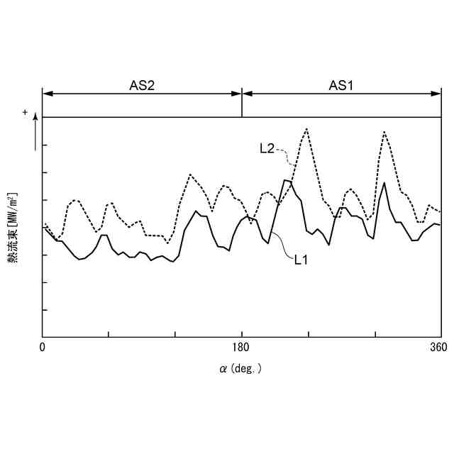 本開示の一実施形態における気筒の内壁面の熱流束の周方向分布を説明するためのグラフである。
