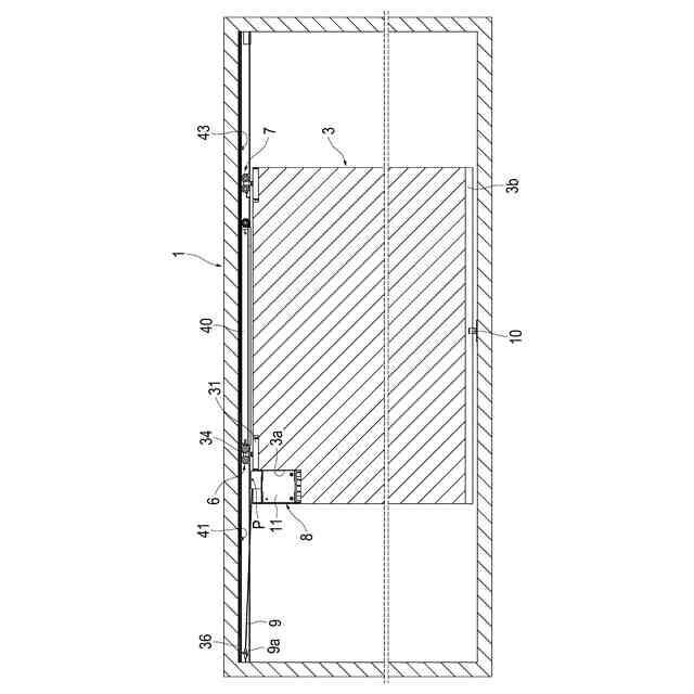 引戸が開き位置にあるときの上吊式引戸を示す図である。