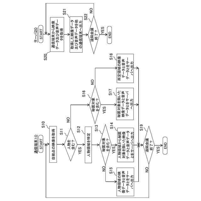 遠隔会議システムでは、各拠点に設けられた通信端末により、拠点における映像及び音声が他の拠点へ送信される。映像には通信相手には見せたくない機密情報等の被写体が写りこんでいる場合がある。映像をそのまま送信すると、意図せず機密情報等が通信相手に知られるリスクがあるため、送信映像についてセキュリティ強化が求められる。