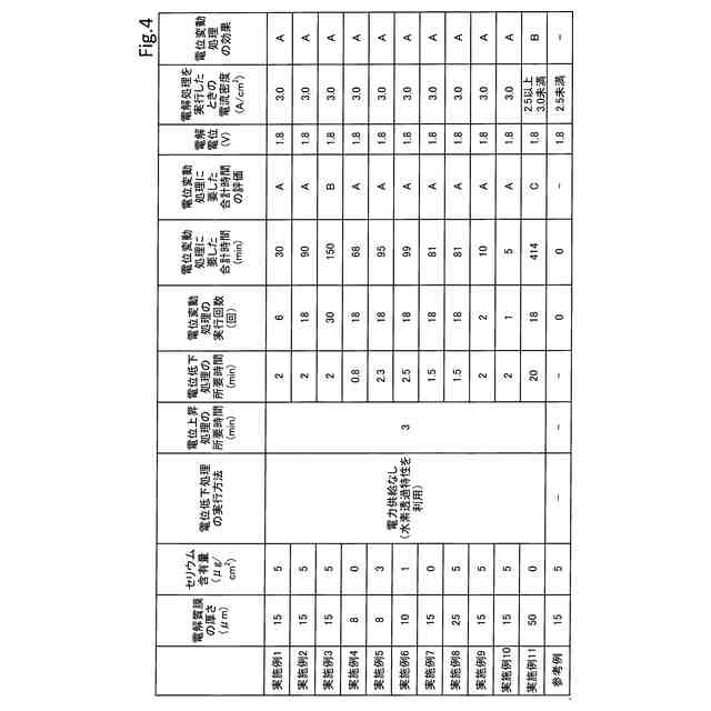 電位変動処理における各種条件の検討結果を示す表。