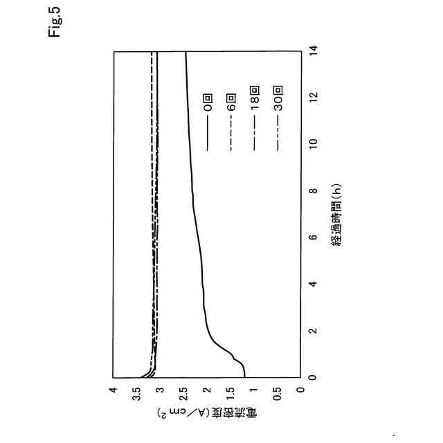 電流密度の推移を電位変動処理の実行回数ごとに示すグラフ。