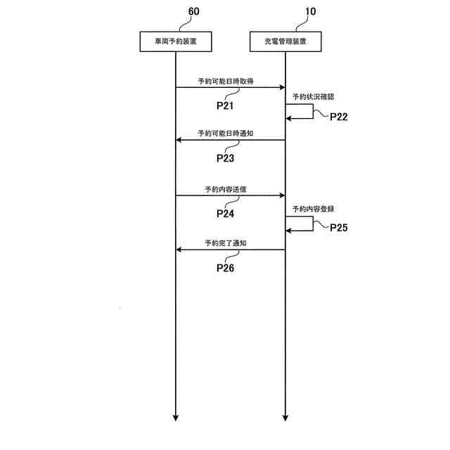 第1実施形態に係る車両充電システムにおける車両の予約時の概要を示す図である。