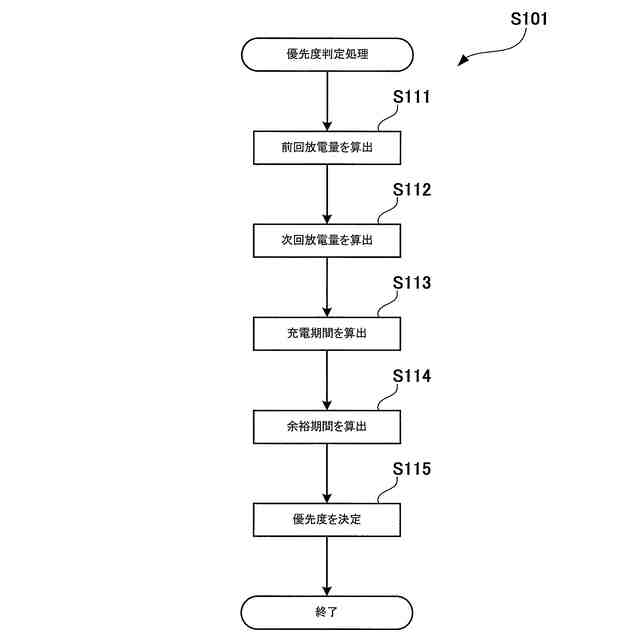 第1実施形態に係る車両充電システムにおける優先度判定処理のフローチャートである。