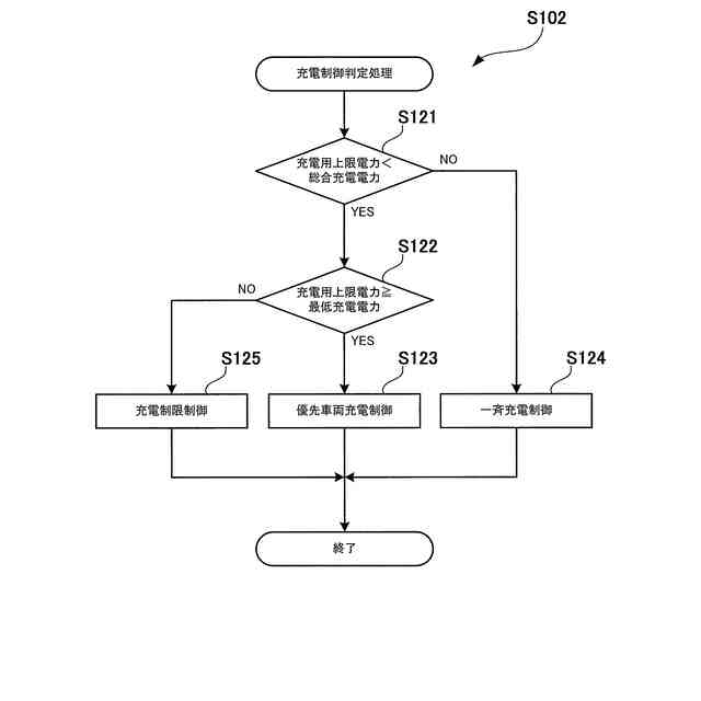 車両の充電に使用可能な上限の電力として予め定められた充電用上限電力が、前記充電可能状態である複数の車両について同時に充電した際に必要となる電力である総合充電電力以上の期間については、当該充電可能状態である複数の車両について同時に充電し、