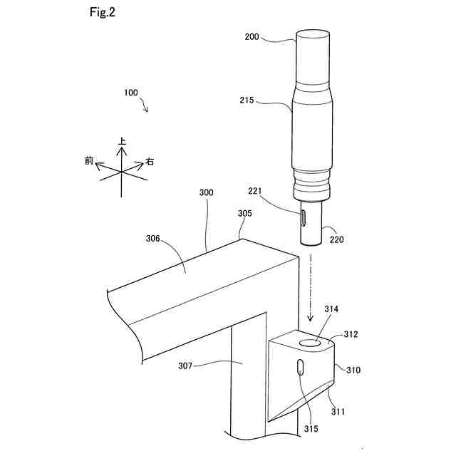 前記アクチュエータの前記端部が前記収容部に収容された状態で、前記アクチュエータの前記端部に設けられた第1貫通孔と前記第2貫通孔とを貫くように固定ピンが配置されることで、前記アクチュエータが取り付け可能に構成されている、