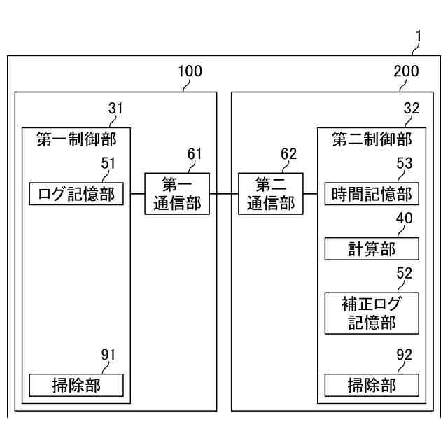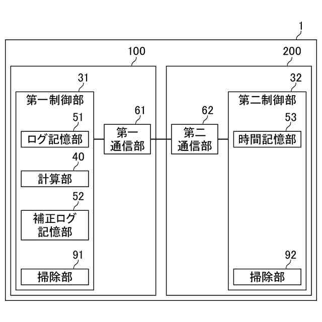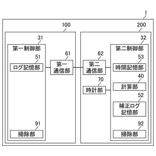 前記第一制御部が、前記計算部と、前記補正ログ記憶部と、を備え、