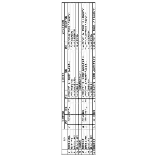 ユーザはまず、バッテリを掃除機(本体)に装着する(ステップS11)。これにより、掃除機の制御部への通電が開始される。制御部は、この時の時刻を基準時刻(0:00:00、即ち0時0分0秒)とし、この基準時刻から制御部への通電が停止された時刻(0:02:35)までに生じた各事象を記録する(ステップS12~S15)。この掃除機では、ユーザが停止ボタンを押下する等して掃除機の運転を停止して一定時間(例えば5秒)経過後に、制御部への通電が自動で停止するよう制御されている(ステップS14~S15)。制御部への通電が停止すると、制御部の時刻がリセットされるため、その後にユーザがバッテリを掃除機から取り外し充電して掃除機に再装着すると(ステップS16~S17)、制御部は、通電が再度開始された時の時刻を再び基準時刻(0:00:00)として、その後の各事象を記録する(ステップS18)。