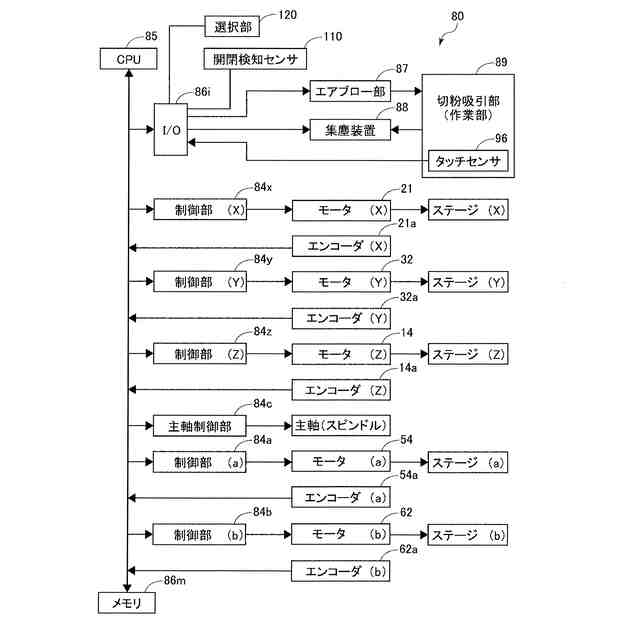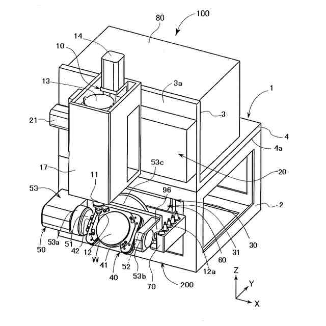 【解決手段】上記課題を解決するために、工具12を把持して加工するための主軸11と、複数の工具12を収納する工具マガジン70と、主軸11を、主軸方向、及び、主軸方向に直交する方向に移動させる移動手段200と、を備え、工具マガジン70には、複数の工具12に対応して主軸方向に上面まで開口した複数のスリット71が形成されたことを特徴とする。また、スリット71の長さは工具12の全長より短いことを特徴としてもよい。