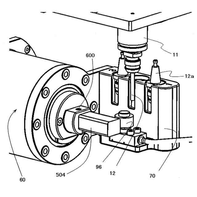 ここで、特許文献1に記載のような工具は、一般的に工具を掴んだ後は上方に移動して、加工を開始するため、高さ方向に大きさが必要になっていた。