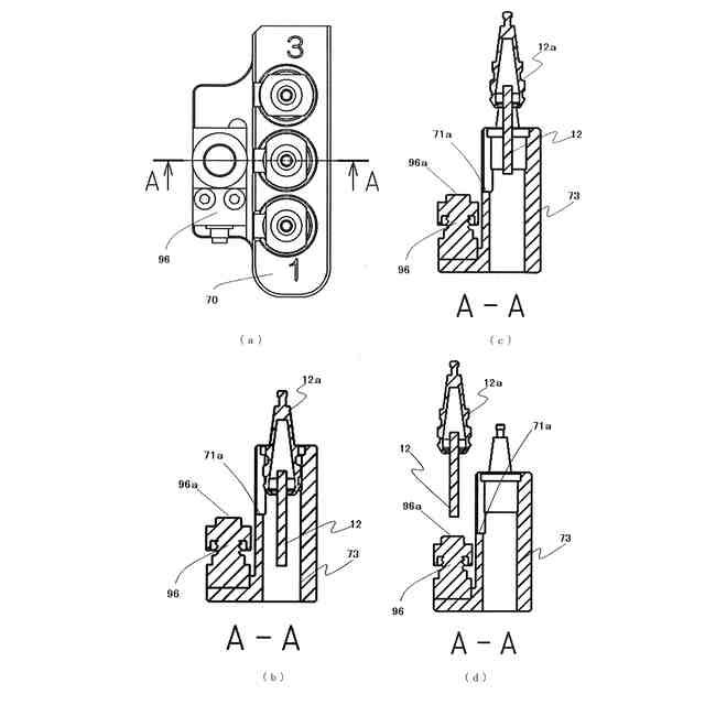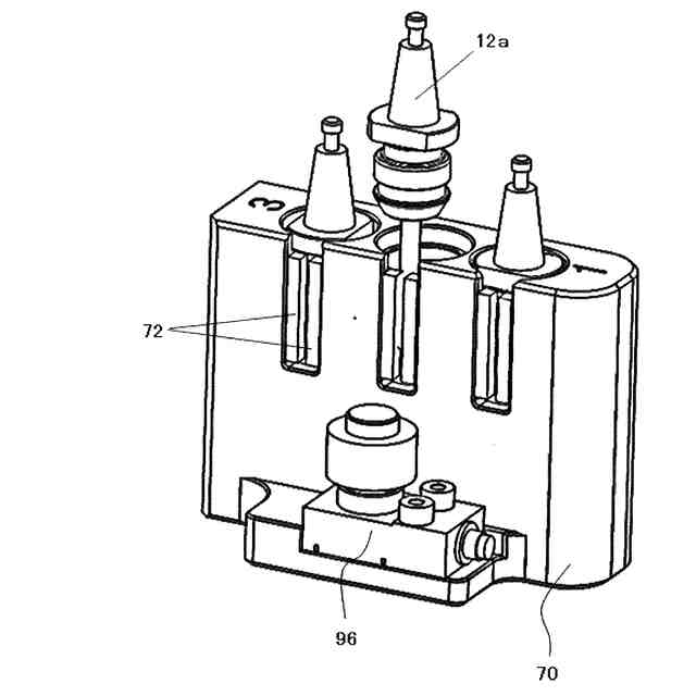 特許文献1の構成では、工具を保持した工具ホルダを把持する工具グリッパの形状がU字形状になっていて、ゴムによる弾性部材で押圧し保持する構成となっている。