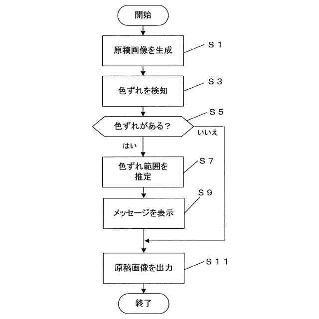 例えばMFP(Multi-Function Printer/Peripheral)において、原稿をスキャンして原稿画像を生成するとき、MFPでは、原稿搬送部が原稿を搬送し、その原稿を画像入力部が読み取って原稿画像を生成する。このとき、画像入力部は、本来は、等速直線運動をする原稿を読み取る。しかし、例えば原稿搬送部の搬送路に付着した糊等の影響により、原稿の搬送速度が遅れることがある。このようなときに、後に詳しく説明するように原稿画像に色ずれが発生する場合がある。第1実施形態ではこの色ずれを検知する。