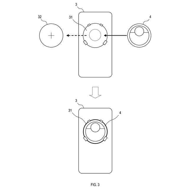 スマートキーの一次電池を充電装置に付け替えることを説明する図である。