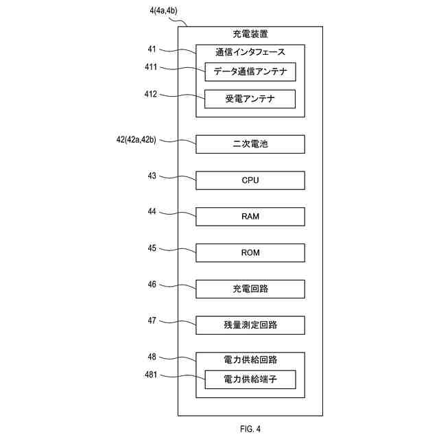 少なくとも1つの充電装置のそれぞれは、電力電波を用いて充電動作を実行するように構成され、更には所定の無線信号を送信するように構成されている。