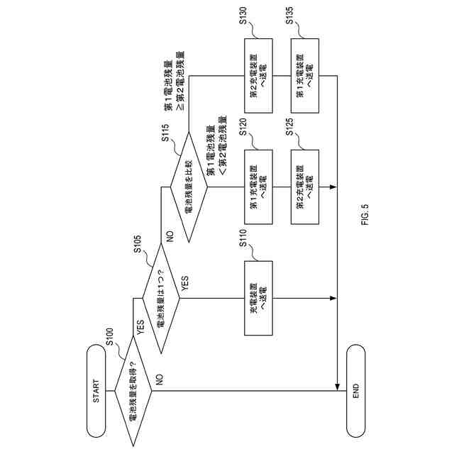 前記第1充電装置は、前記所定の無線信号として、前記第1の二次電池の電池残量を示す第1残量信号を送信するように構成され、