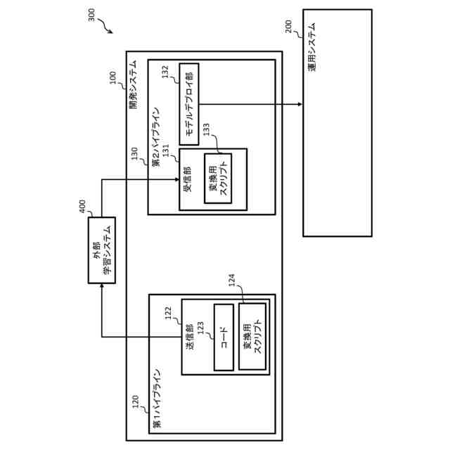 【解決手段】開発システム100は、学習データを外部学習システム400の学習用に処理し、処理した学習データを用いて外部学習システム400で機械学習モデル401を学習させる第1パイプライン120と、学習データを学習した機械学習モデル401を運用システム200にデプロイする第2パイプライン130と、を有する。
