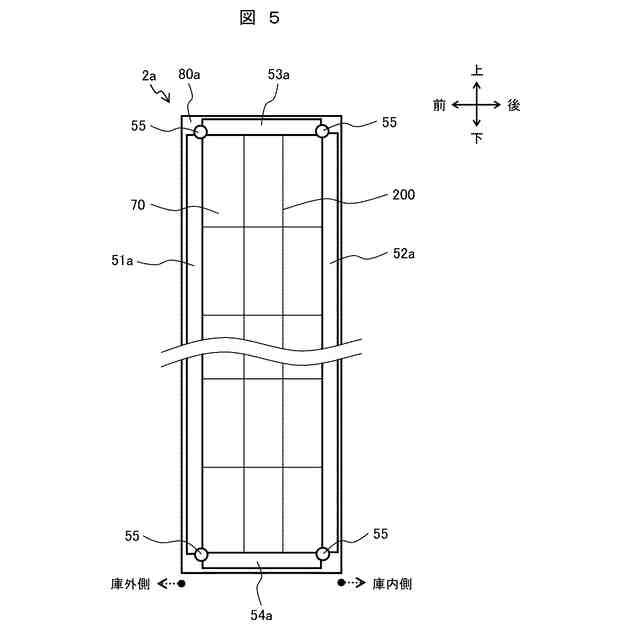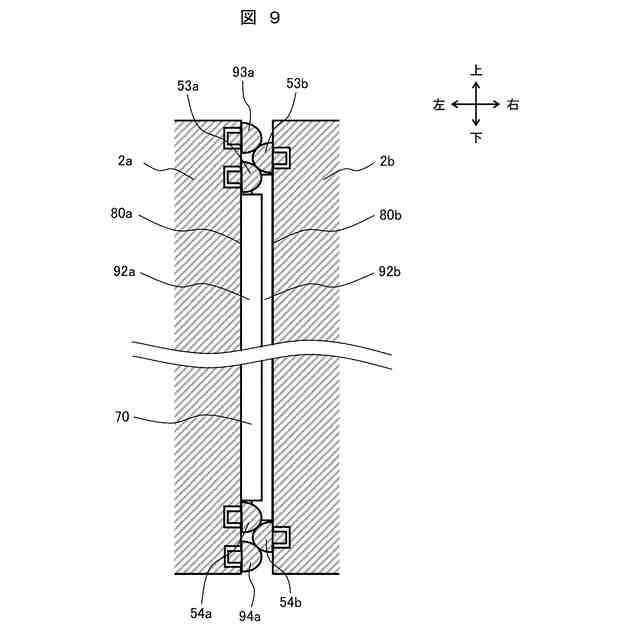 前記左扉または前記右扉のうち一方の扉は、前記封止部材として、前記上端封止部材としての第1上端封止部材と、前記第1上端封止部材の上側に設けられた第2上端封止部材と、前記下端封止部材としての第1下端封止部材と、前記第1下端封止部材の下側に設けられた第2下端封止部材と、を有し、