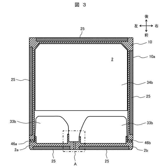 2つの前記側面部の一方又は両方に設けられて前後に延在する上端封止部材と、