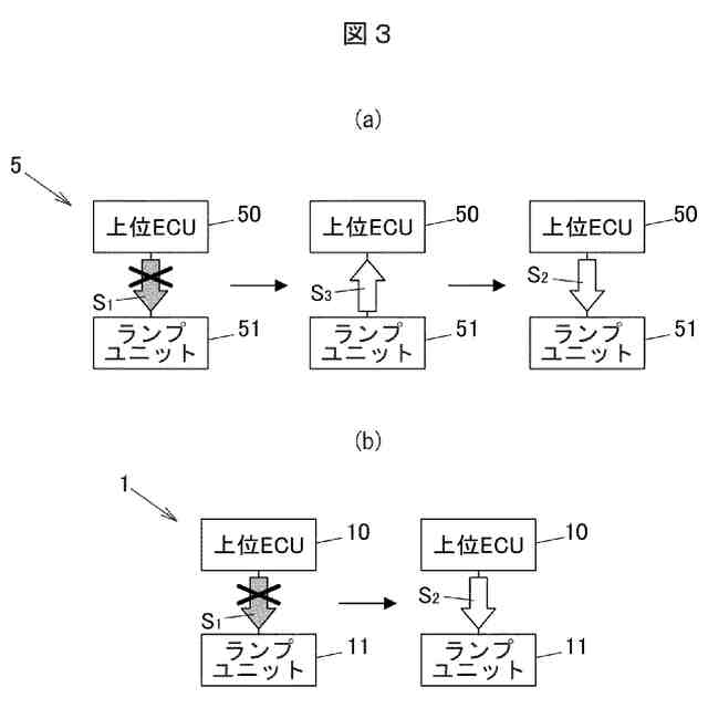 前記上位ECUは、前記複数のランプユニットに前記動作指示信号を送信した後、次の動作指示信号を送信するまでの間、前記フェールセーフ動作指示信号を繰り返し送信する、