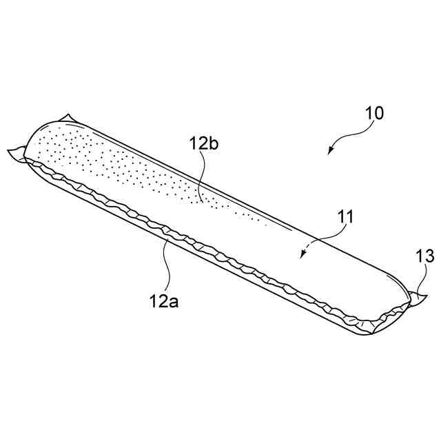 本発明の一実施形態に係る水溶性単位用量物品10は、図1に示すように、スティック状に構成され、水溶性物質11と、第1水溶性フィルム12aと、第2水溶性フィルム12bと、を有する。水溶性単位用量物品10では、水溶性物質11が内容物を構成し、水溶性フィルム12a,12bが包装材を構成する。