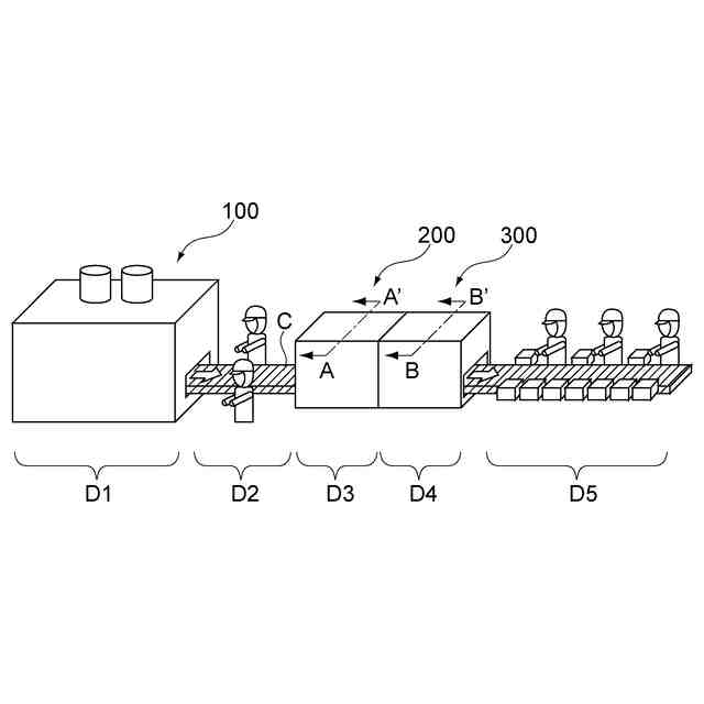 上記水溶性単位用量物品の作製等のラインを示す模式図である。