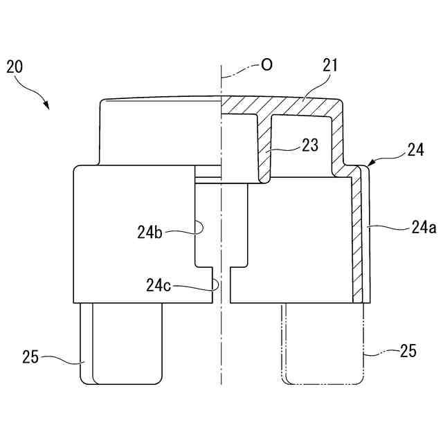 上記態様によれば、摺動筒部および保持筒部が複数組設けられ、摺動リングが、複数の保持筒部のうちの1つに固定され、かつ複数の前記摺動筒部のうちの1つを摺動する。したがって、摺動リングを固定する保持筒部を複数の保持筒部の中から選択し、かつ摺動リングが摺動する摺動筒部を複数の摺動筒部の中から選択することによって、作動空間の広さを変更することが可能になり、摺動リングに対する摺動筒部の上下方向の移動量を変更しなくても、スポイト管の下端開口から吸い上げられる容器本体の内容物を変更することができる。これにより、部品を設計変更して新規に作製しなくても、スポイト管の下端開口から吸い上げられる容器本体の内容物の量を変更することができる。