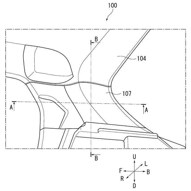 本発明によれば、ルーフライニングには、第1立壁、第2立壁および底壁の3壁で形成された下方に箱状に窪んだ窪み部が形成されている。このため、ルーフライニングのうちピラーに当接する箇所すなわち底壁の剛性が向上している。したがって、ルーフライニングの隅をピラーに精度良く当接させることができ、ルーフライニングの位置決め精度が向上する。