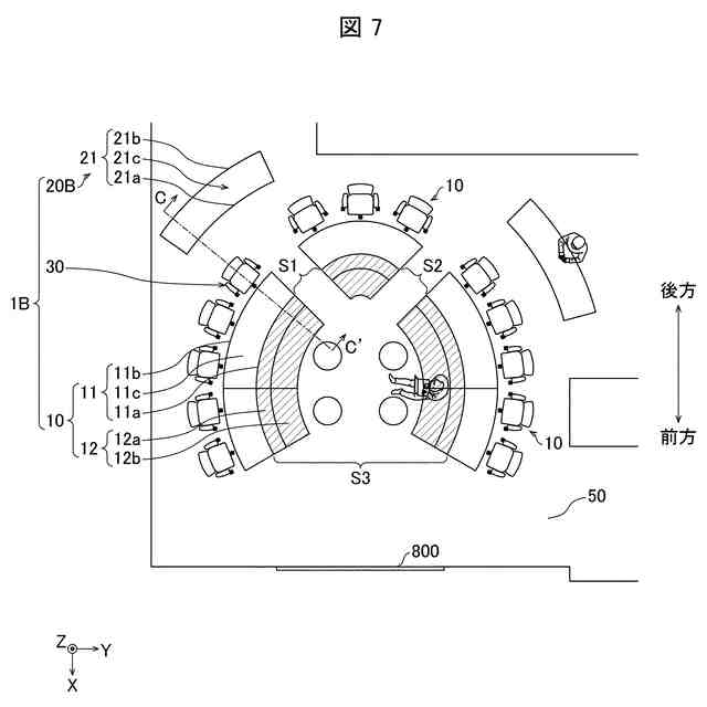 しかしながら、特許文献3は、後列に居る人はスタンディングの姿勢を取るため、その更に後ろの列に人を配置するようなレイアウトにしようとすると、当該スタンディングの人によって後ろの列の人は、視界が遮られて居心地の悪さを感じる。