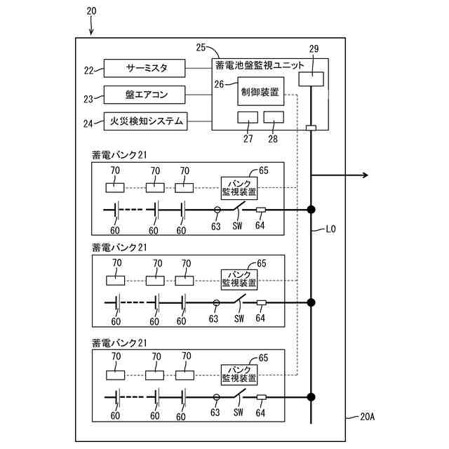 蓄電バンクは、複数の蓄電モジュール(複数の蓄電セルをユニット化したもの)を、直列に接続した構成が一般的であり、モジュール監視装置により蓄電モジュールの状態を監視し、バンク監視装置により蓄電バンク全体を監視する形態がある。