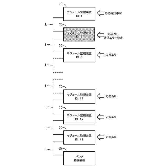 モジュール監視装置がデイジーチェーン接続されている場合、通信エラー発生箇所の特定が困難な場合があり、通信エラーの復旧に、時間が掛ることが懸念された。