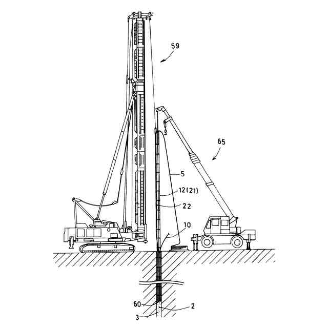 硬化材を含む掘削土砂混合液が内部に貯留されてなる該ボアホール内で上下方向に延長して配置される、有底筒状の可撓性を有する防水性の筒状袋体と、前記ボアホール内で、前記筒状袋体の外側面に沿って上下方向に延長し且つ該筒状袋体の袋体下端部に抵抗材下端部が連結される上下延長の浮力抵抗材と、該浮力抵抗材の上端を、該上端が上方向へ移動しないように支持する反力材とを具備し、