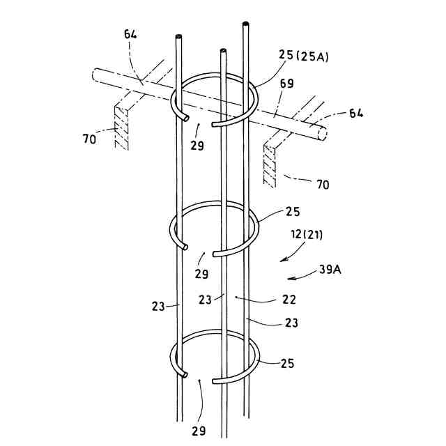 前記浮力抵抗材は、前記筒状袋体を上下方向で収容させ得る上下に延長する鋼製の筒状体として構成され、該筒状体は、周方向に所要角度ピッチで立設された軸鉄筋を、上下所要間隔で、環状を呈する環状鉄筋で連結することによって筒状に構成されており、該軸鉄筋は、該環状鉄筋の内周面部及び/又は外周面部に当接した状態で該環状鉄筋に連結されており、該環状鉄筋の全ては、平面視同一の側で、前記袋体を該筒状体内に導入させ得る導入開口部が切欠形成されており、該筒状体の下端部である筒状体下端部は前記抵抗材下端部とされており、