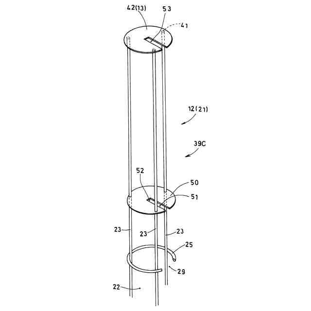 本発明に係る地中熱交換装置の第3の態様は、前記第1の態様において、前記浮力抵抗材は、前記筒状袋体を上下方向で収容させ得る上下に延長する鋼製の筒状体として構成されており、該筒状体内に、上下方向に延長する前記筒状袋体が収容されることを特徴とするものである。