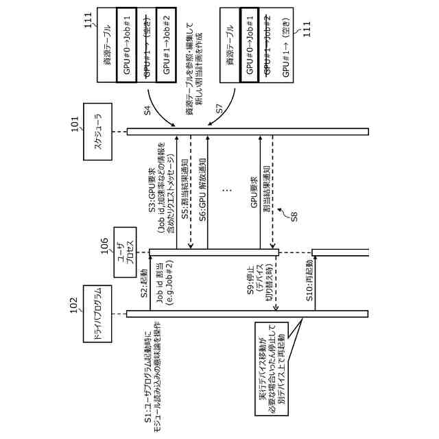 また、GPUを効率的に利用する手法として、GPUプリエンプションが知られている。GPUプリエンプションにおいては、GPU利用中のジョブを外部から停止させ、他のジョブにGPUの利用権を移譲することを可能とする。このようなGPUプリエンプションを定期的に行なうことで、時間単位でGPU利用プロセスを切り替えることができ、後続するジョブが、先行ジョブが完全に停止するまで待たずにGPUを利用することができる。