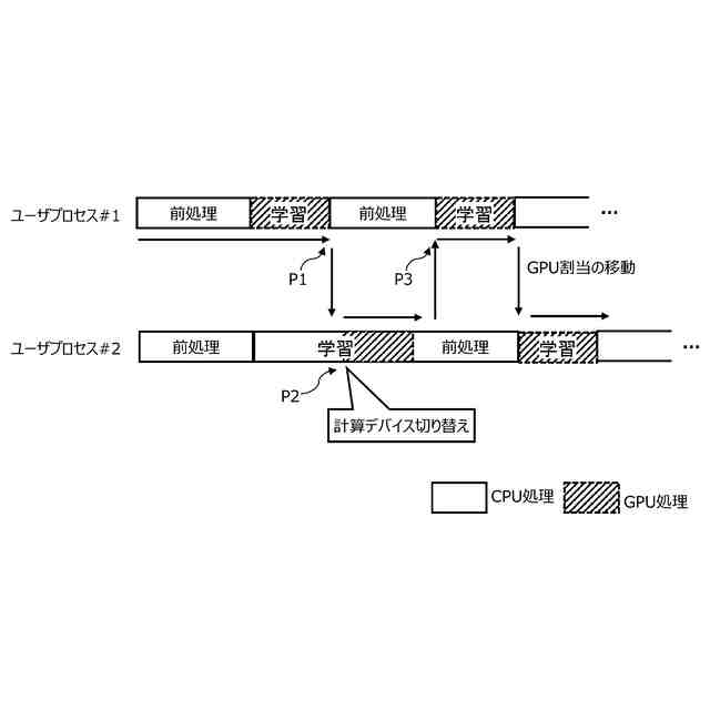 しかしながら、GPUプリエンプションにおいては、プロセスの実行中にGPUを利用していない期間があっても、GPUを占有し続けてしまう。このようなGPUの占有を抑制するためには、深層学習アプリの処理内容の時間変化に合わせてGPU割当を切り替える必要がある。