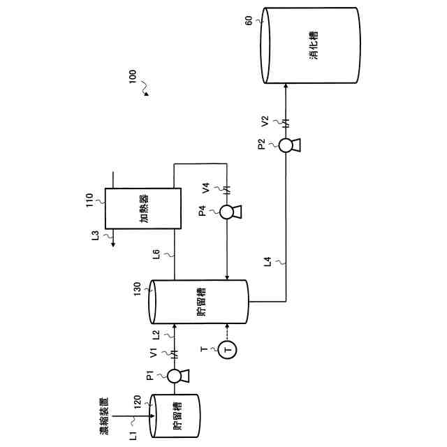 【解決手段】余剰汚泥を消化する第1槽と、余剰汚泥を第1槽に供給する第1配管と、第1配管内の余剰汚泥を流体によって加熱する第1加熱器と、第1加熱器によって加熱される前の余剰汚泥と、第1加熱器によって加熱された余剰汚泥とを貯留する第2槽と、第1加熱器と第2槽との間において余剰汚泥を循環する第2配管と、第2槽内における余剰汚泥の温度に基づいて、第2配管に対する余剰汚泥の供給と、第1槽に対する余剰汚泥の供給とのうちの少なくともいずれかを制御する制御装置と、を備える。