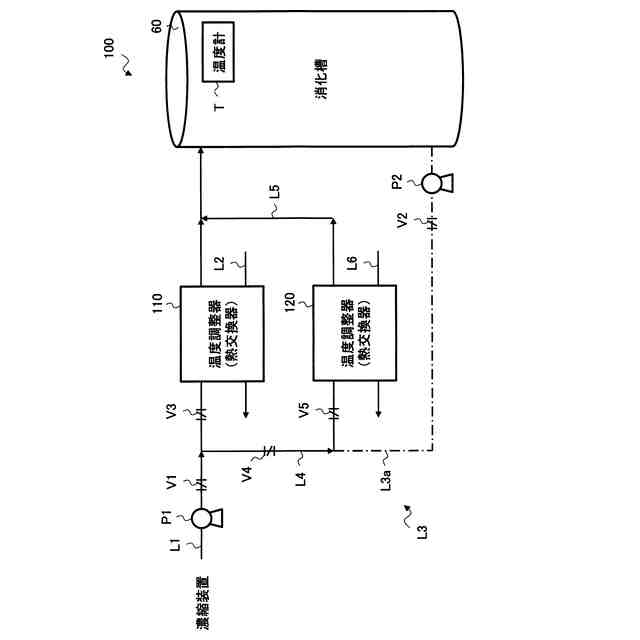 【解決手段】汚泥の消化を行う槽と、余剰汚泥を槽に供給する第1配管と、槽内の消化汚泥を槽外との間において循環する第2配管と、第1配管内の余剰汚泥と第2配管内の消化汚泥とのうちの少なくともいずれかを流体によって加熱または冷却する第1温度調整器と、消化に係る温度に基づいて、流体として第1流体と第1流体よりも温度が低い第2流体とのうちの少なくともいずれかを第1温度調整器に供給する制御装置と、を備える。