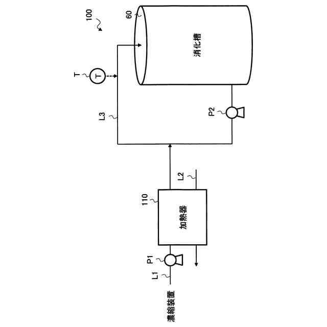 【解決手段】汚泥の消化を行う槽と、槽内の消化汚泥を槽外との間において循環する第1配管と、前記第1配管に対して余剰汚泥を供給する第2配管と、第2配管内の余剰汚泥を加熱する加熱器と、第1配管内における余剰汚泥の温度と第2配管内における余剰汚泥の温度とのうちの少なくともいずれかに基づいて、槽から第1配管に対する消化汚泥の供給を制御する制御装置と、を備える。