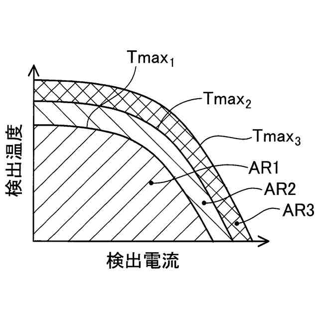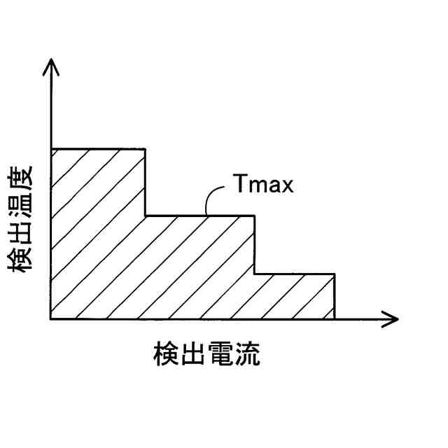 前記検出電流と、前記上限温度としての第1上限温度とがマップまたは式で関連付けられた第1関係と、