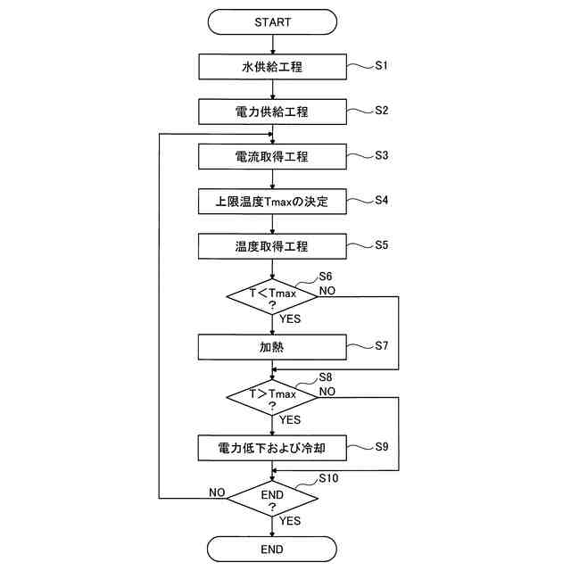 取得された前記水温度が予め設定された上限温度以下となるように、前記水電解装置に供給される電力を制御する制御工程と、