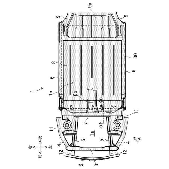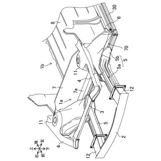 しかし、フロアパネルの下方のスペースは高さに制約がある。そのため、バッテリユニットは、水平方向に大きくしたい。それに対し、車体の前部には、車両の前方から作用する荷重を受け止める一対のフロントサイドフレームがある。