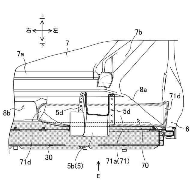 バッテリユニットは、高重量かつ大容量である。そのため、バッテリユニットは、面積の広いフロアパネルの下方に拡がるように配設されるのが一般的である。