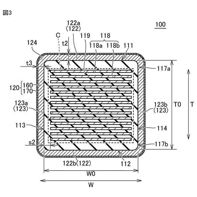 図1に示す積層セラミックコンデンサのIII-III線に沿った模式断面図である。