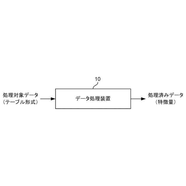 【解決手段】解析対象のデータが格納された第1テーブルを複製して第2テーブルを生成する複製部と、前記第1テーブルと前記第2テーブルとを、前記データの識別のための識別列に基づいて交差結合して新たな第3テーブルを生成する結合部と、前記結合部が生成した前記第3テーブルにおける、前記第1テーブルの説明変数の列と前記第2テーブルの説明変数の列との差分を演算し、前記第3テーブルに新たに生成した列に格納する演算部と、前記演算部が生成した列に対して特徴量を抽出する抽出部と、を備える、データ処理装置が提供される。