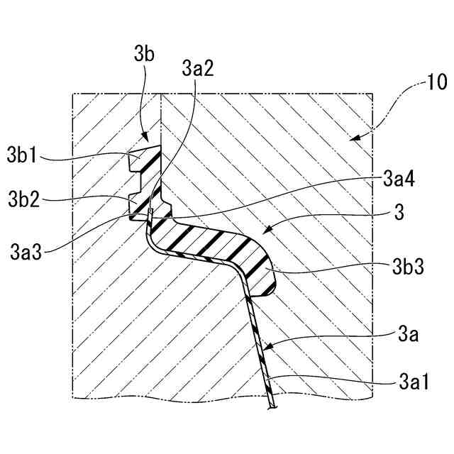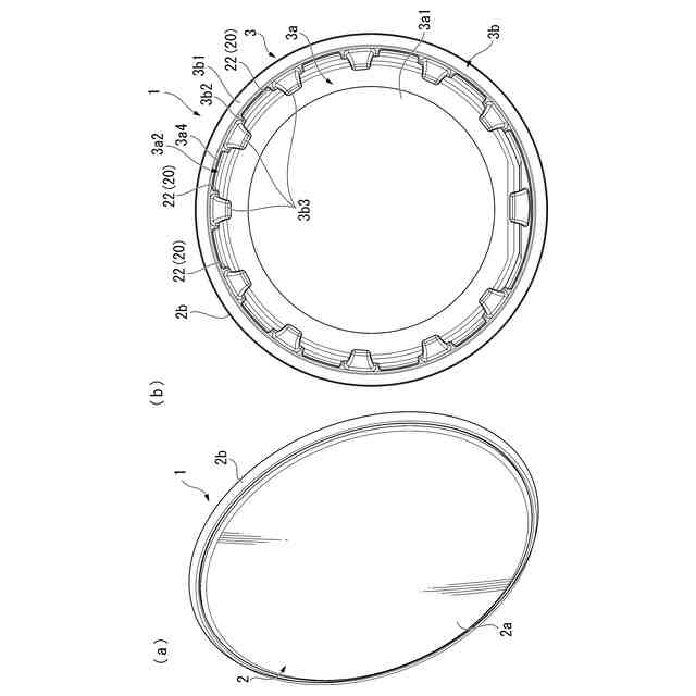 本発明の第3の態様は、上記第1または第2の態様において、上記フランジ部が、上記表面として、互いに反対方向を向く第1面と第2面とを有し、上記保持部が、上記露出凹部として、上記第1面の一部を露出する第1露出凹部と、上記第2面の一部を露出する第2露出凹部とを有するという構成を採用する。