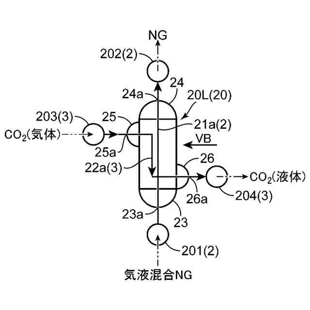 しかしながら、熱交換器にて二酸化炭素を冷却するために使用される低温液化ガスの温度は、例えば-150℃~-160℃であり、一般的な貯蔵及び輸送時の圧力(0.52MPa~3MPa)における二酸化炭素の固化温度(略-56℃)よりもかなり低い。このため。熱交換器にて液化対象ガス流路を流れる二酸化炭素が低温液化ガスの冷熱により固化して当該流路を閉塞する虞がある。